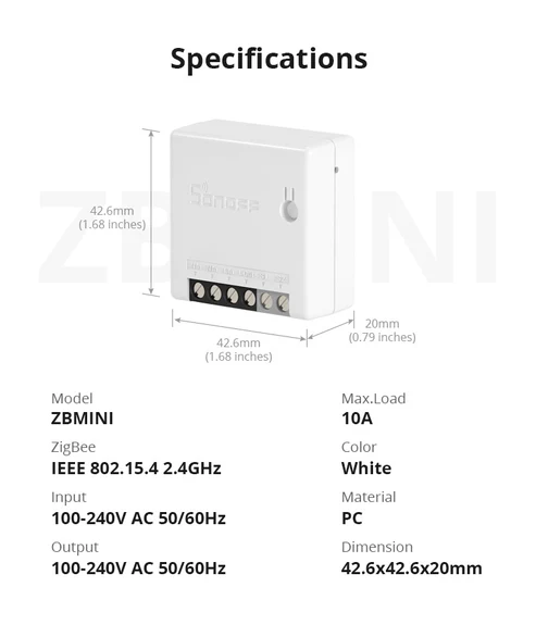 The SONOFF ZBMINI Zigbee Smart Switch features a compact design that fits inside most switch boxes and uses a flame-retardant casing for improved safety and durability.